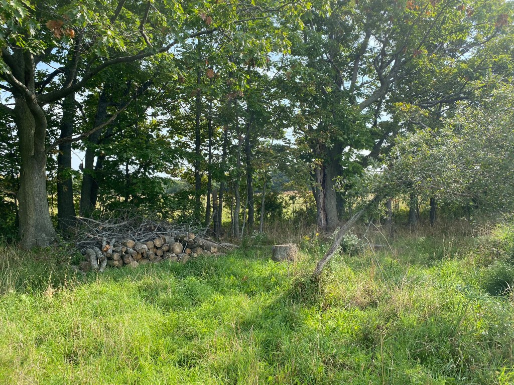 Photo 4. Felled ash logs stacked in concentrated piles to retain carbon, support habitat, and reduce site disturbance.
